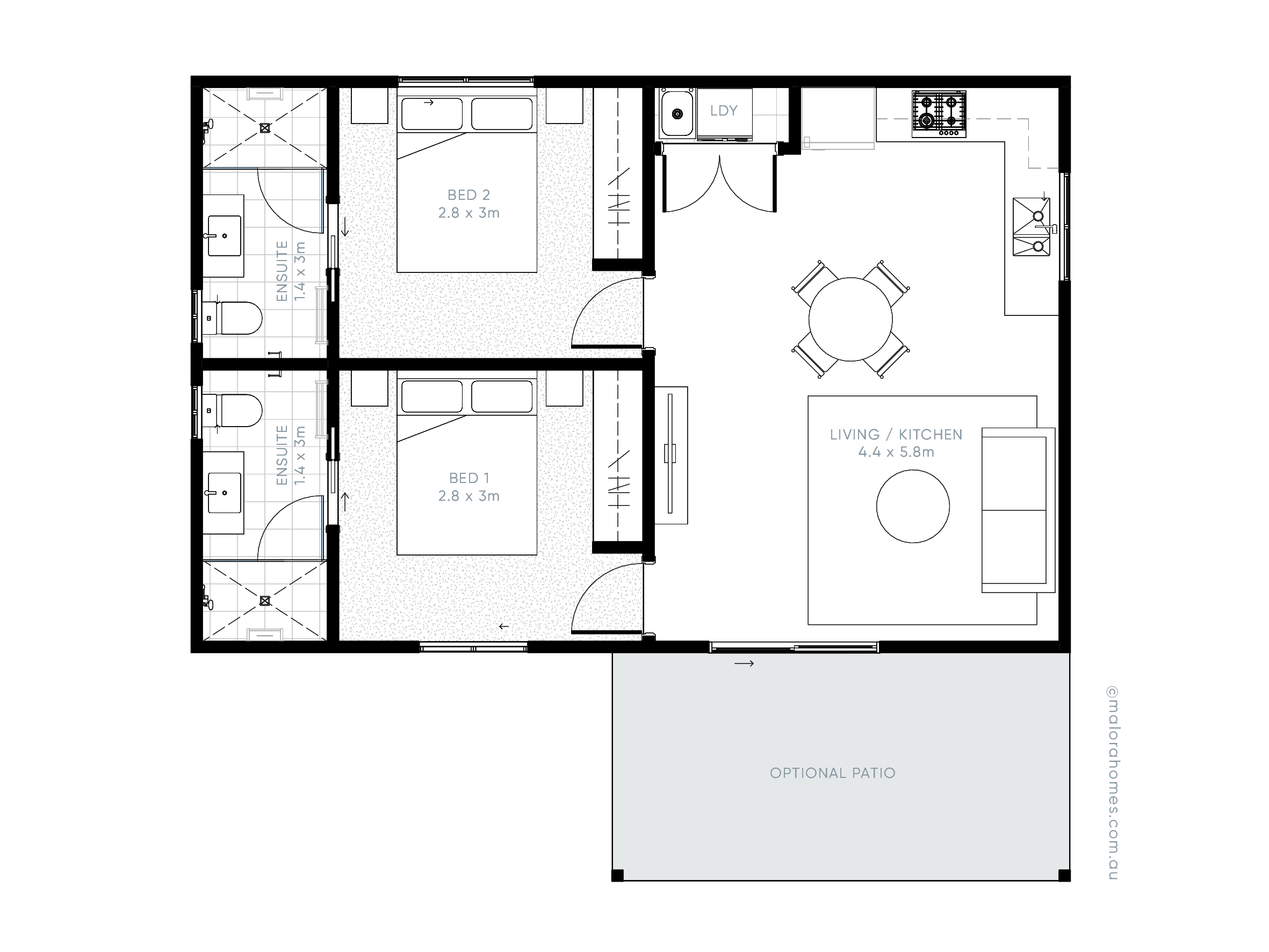 Internal 60m2 / Length 9580mm / Depth 6270mm
